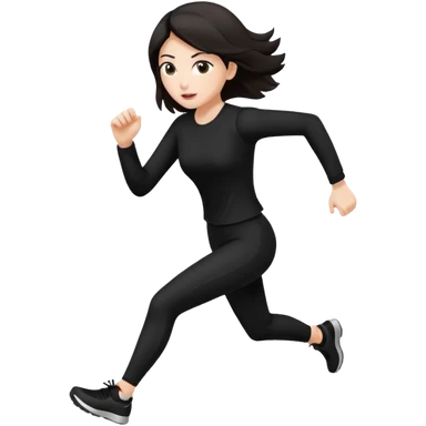 Head to toe Body woman from the front run’ing toward the screen White skin black/brown hair in black clothes emoji