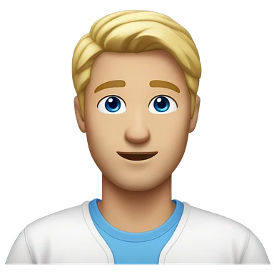 a blonde guy with middle parting blond slicked back hair in a white oversize t shirt and a nice tan and blue eye emoji