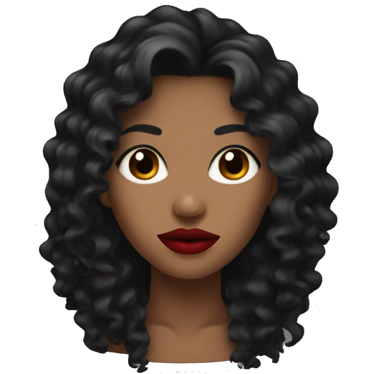Head, woman dark tan skin with long black curly hair, red lipstick emoji | AI Emoji Generator