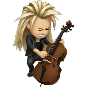 Typicalt emoji icon listening to music headbanging holding a hand up showing the rock symbol emoji