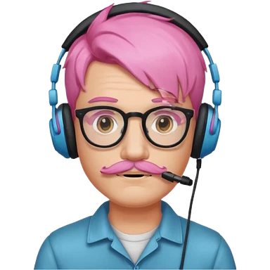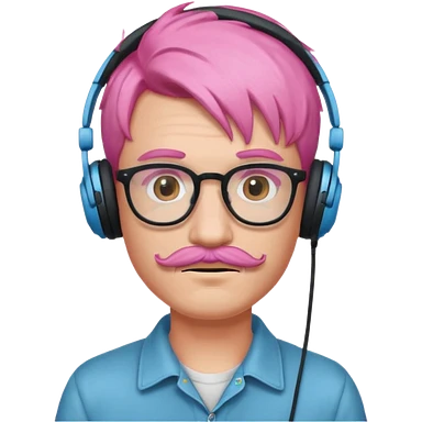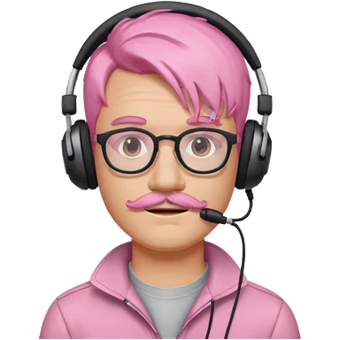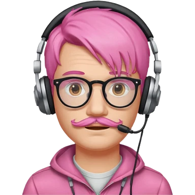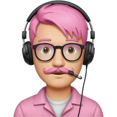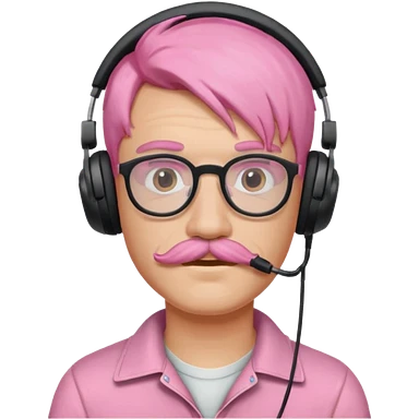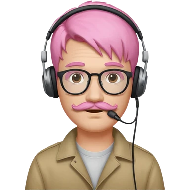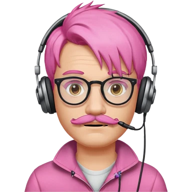 just headphone and spectacles, mustached pink hair guy, no mic, emoji