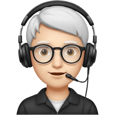 just headphone and spectacles, mustached pink hair guy, no microphone emoji