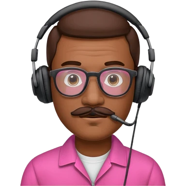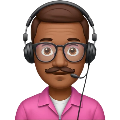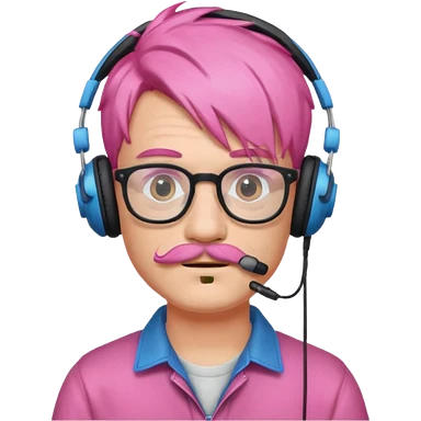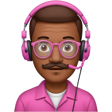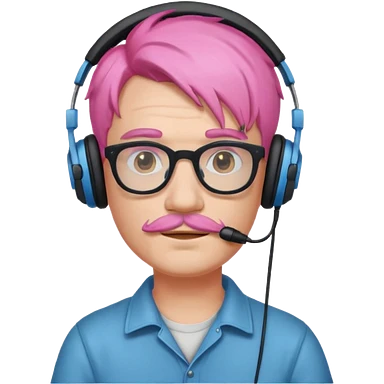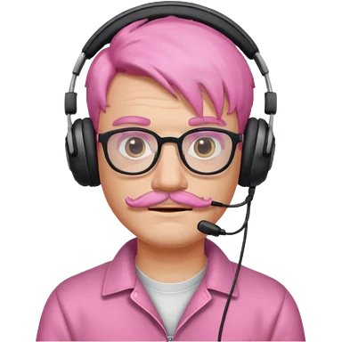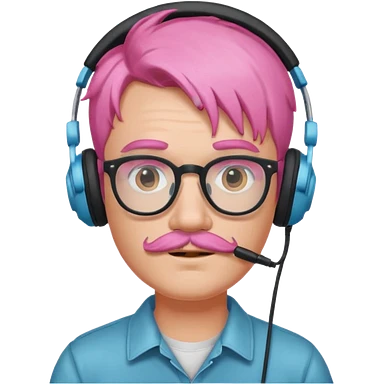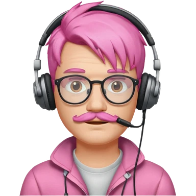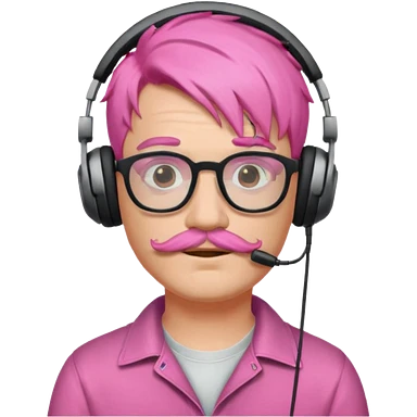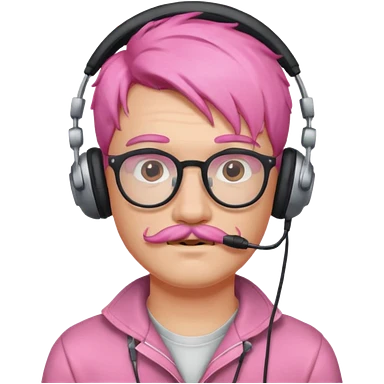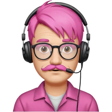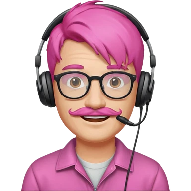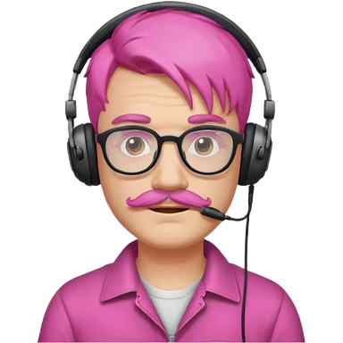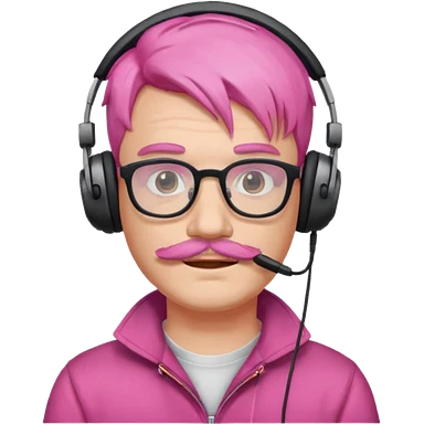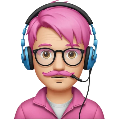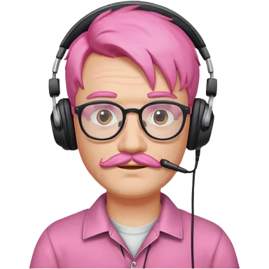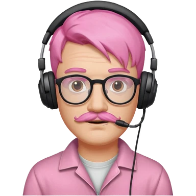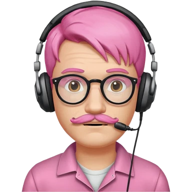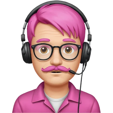 headphone and spectacles, mustached pink hair guy, no mic emoji