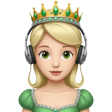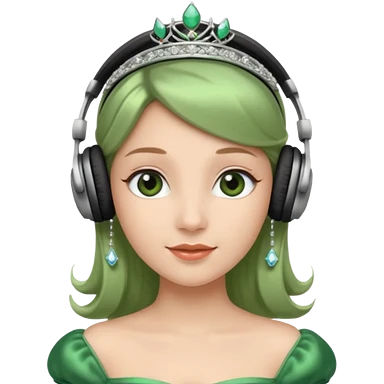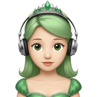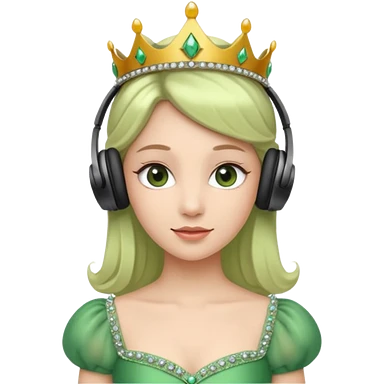 princess with headphones tiara and green dress emoji