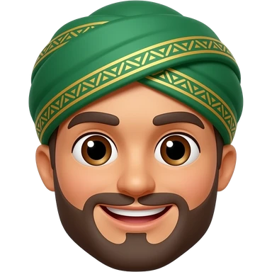 3D isometric face, warm wheatish skin, wide kind brown eyes, friendly smile. Minimalist professional style, emerald turban/headwear with gold embroidery. Soft studio lighting, 8k Octane render, ray-tracing detail. Isolated on white background, premium literary aesthetic --v 6.0 emoji