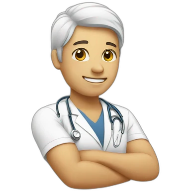 Doctor with clipboard conducting comprehensive medical check-up on patient, routine health examination in clinic emoji