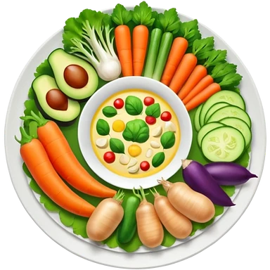Healthy home cooking humanless avatar in clean style vibrant illustration. Fresh vegetables bowl, green tones, simple shapes, flat design, friendly and light. emoji