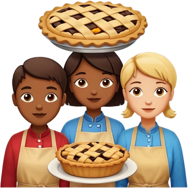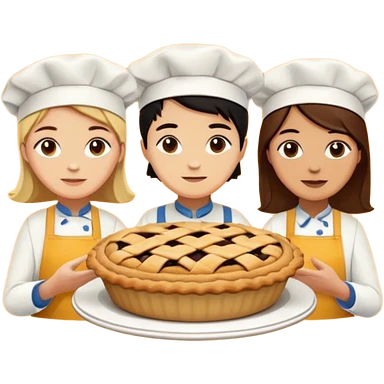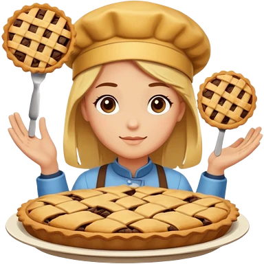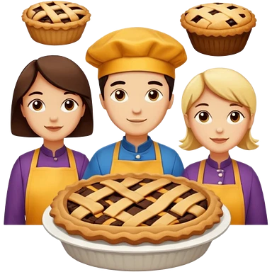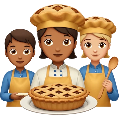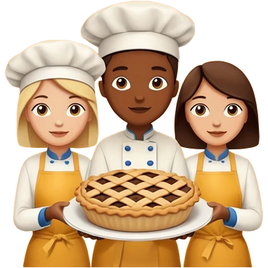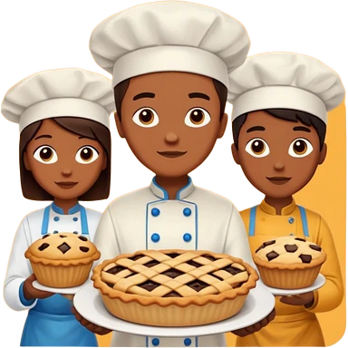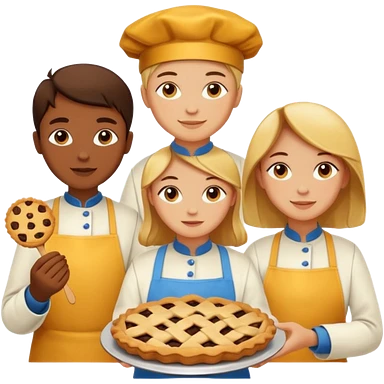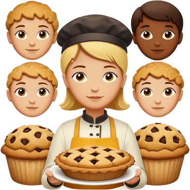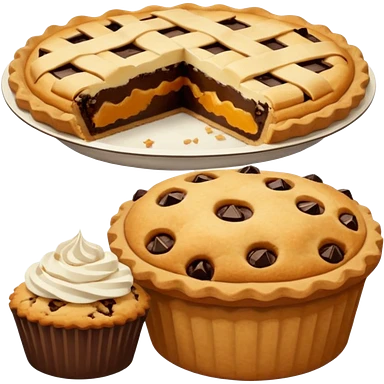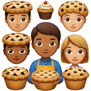 Baking community humanless avatar in vibrant style illustration. Pie, cookie, and muffin warm golden tones, simple shapes, flat design, high contrast. emoji