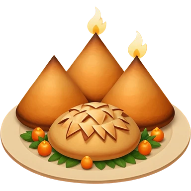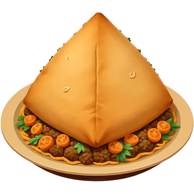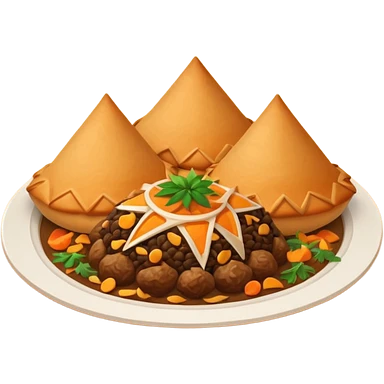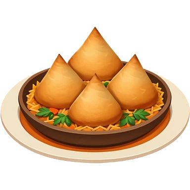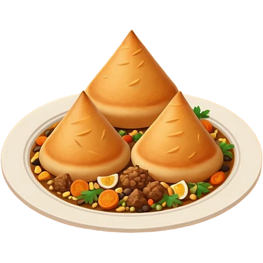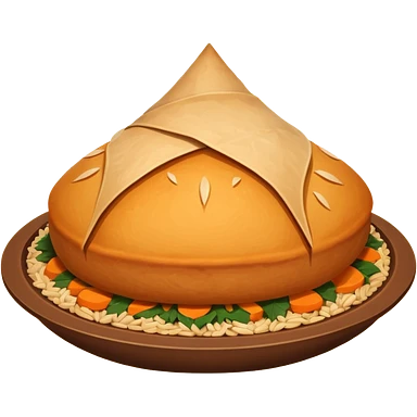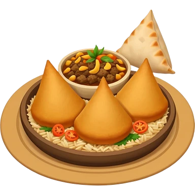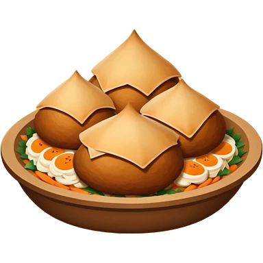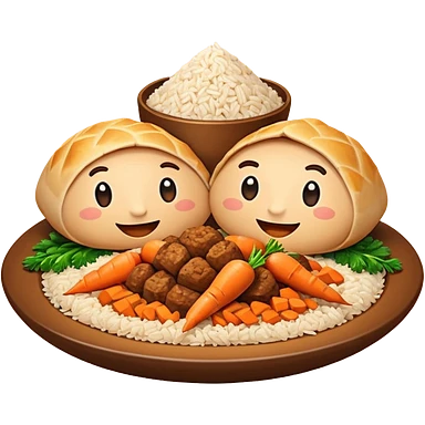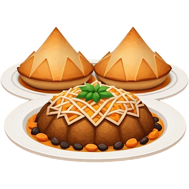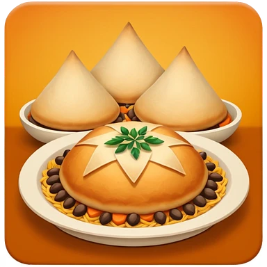 Uzbek cuisine humanless avatar in bright emoji-style illustration. Classic dishes like plov and samsa, warm golden and earthy tones, simple shapes, flat design, high contrast, friendly and appetizing. emoji