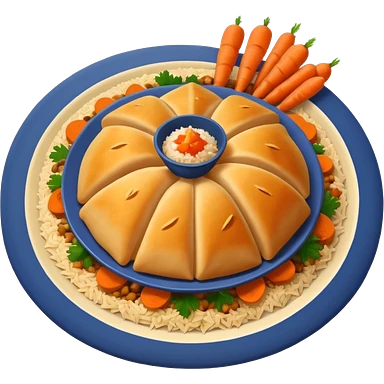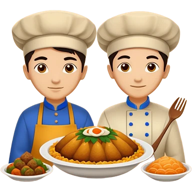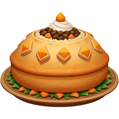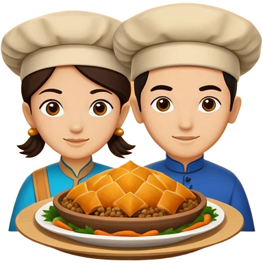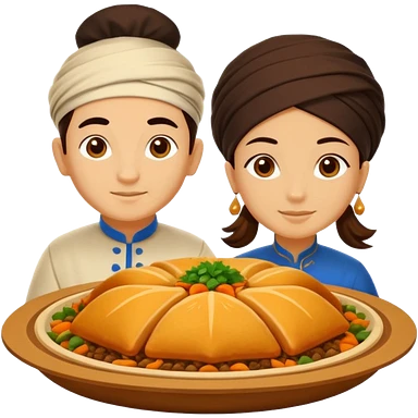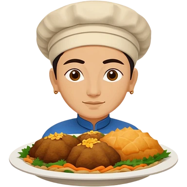 Uzbek cuisine humanless avatar in bright illustration. Classic dishes like plov and samsa, warm golden and earthy tones, simple shapes, flat design, high contrast, friendly and appetizing. emoji
