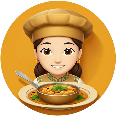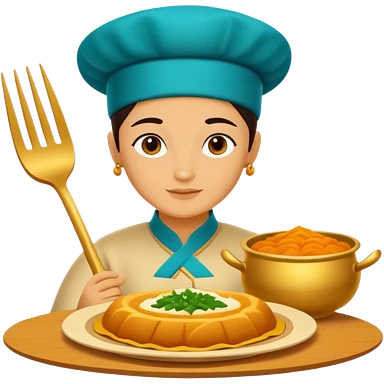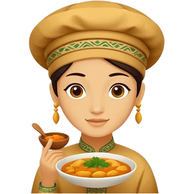 Uzbek cuisine humanless avatar in bright illustration. Classic dishes like plov, warm golden and earthy tones, simple shapes, flat design, high contrast, friendly and appetizing. emoji