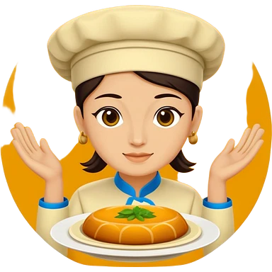 Home cooking humanless avatar in clean emoji-style illustration. Homemade dishes on a plate, warm cozy colors, simple shapes, flat design, high contrast, friendly and inviting. emoji
