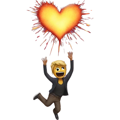Heart with fireworks in background exploding out of heart with red orange yellow green blue purple emoji