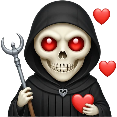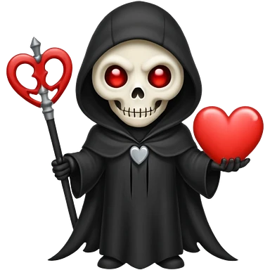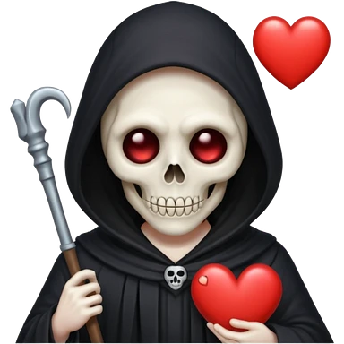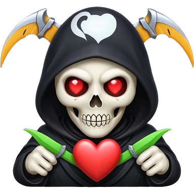 cute animated non-human grim reaper holding a heart, emoji style emoji