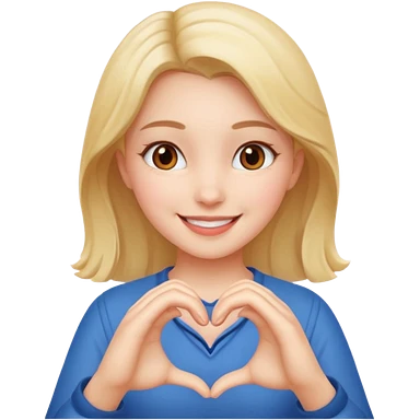 smiling girl with heart hand emoji