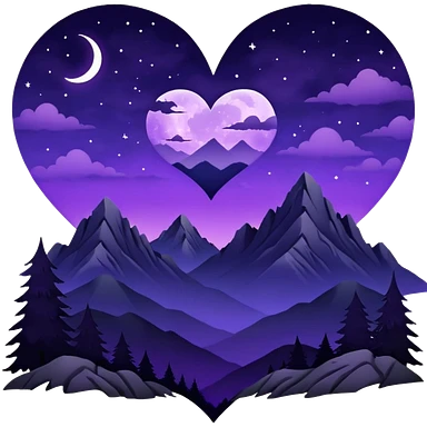 heart with a night sky gradient and tiny stars scattered, midnight theme emoji
