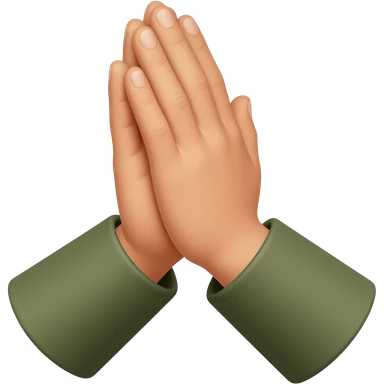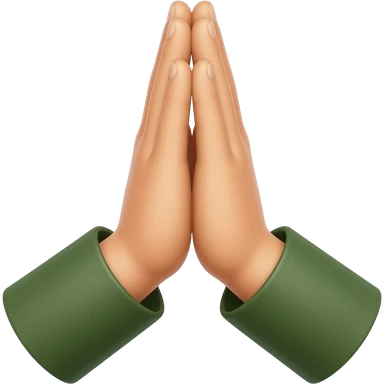 simple sticker of folded hands (praying gesture) with is dark olive greensleeves, emoji