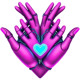 Neon cyberpunk style heart made of hands emoji