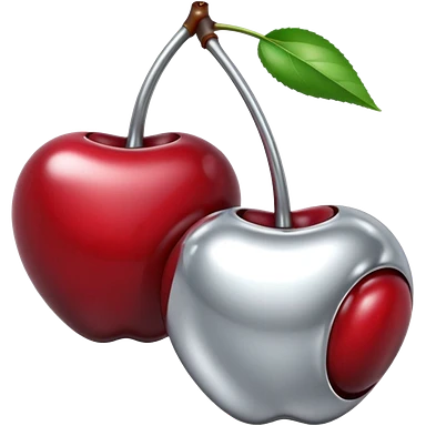 A pair of cherries emoji made of liquid silver chrome, smooth rounded shapes, glossy metallic surface, subtle sensual vibe, luxury sexy aesthetic, iOS emoji style, centered, clean white background emoji