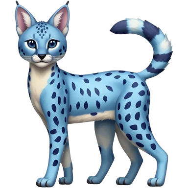 Colorful bluish blubbery-blue cute adorable tropical exotic fruity rosy Caracal-Cheetah-Serval-Snow-Leopard-Trico-Sergal-Vernid-fusion-hybrid-animal-creature, full body, with tribal markings emoji