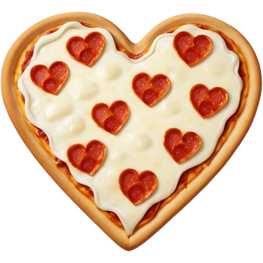 Realistic heart shaped pizza sitting flat in an open top pink pizza box. emoji