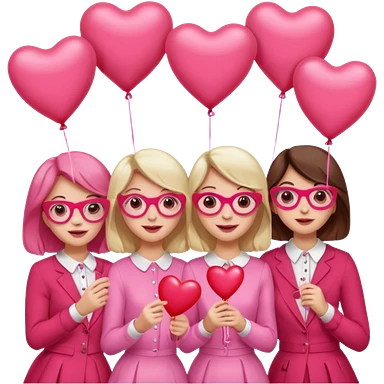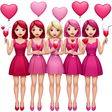 galentines party : change their outfits in red and pink, add pink heart balloons and pink glasses in their hands emoji