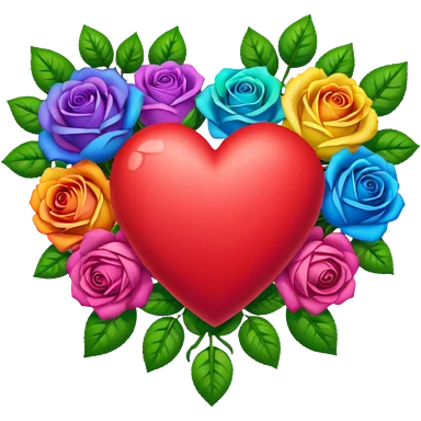 Heart with rainbow roses & leaves emoji