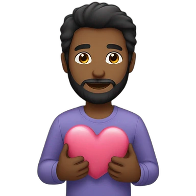 bearded man with black hair and a gap tooth smiling and hugging a heart emoji