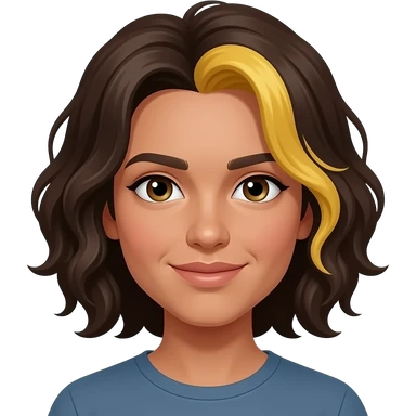 Pelo ondulado con mechones amarillos a los lados con piel trigueña emoji