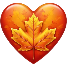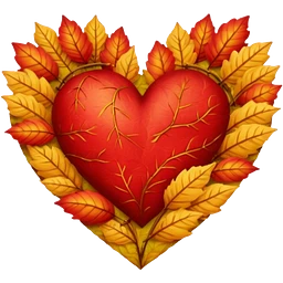heart with a golden autumn leaves theme, clean digital illustration emoji