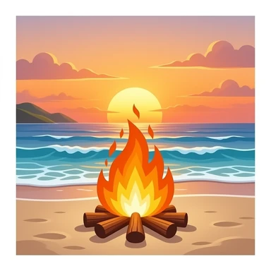 Bonfire with a beach and sunset in the background emoji