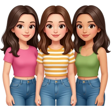 Three girl bestfriends, one with brown hair blonde high lights, one with pink hair , and the other one with dark brown hair emoji