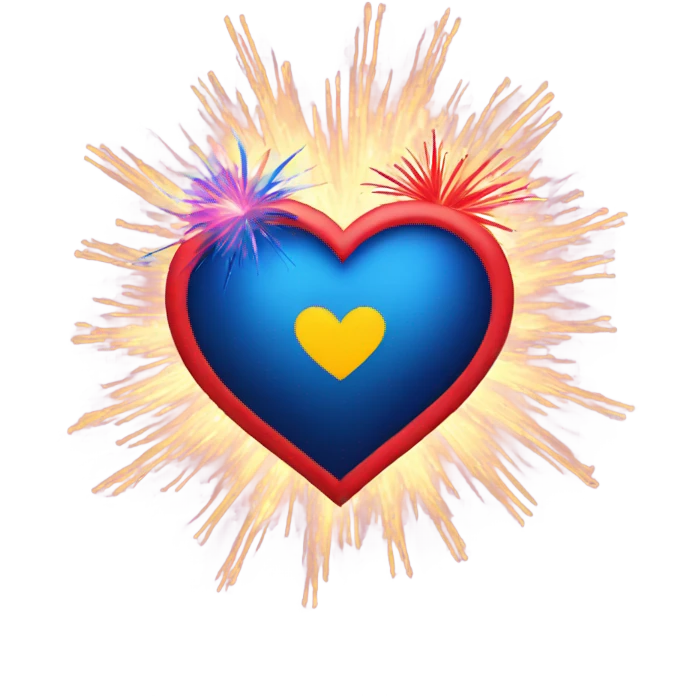 Heart with fireworks in background exploding out of heart with red orange yellow green blue purple emoji