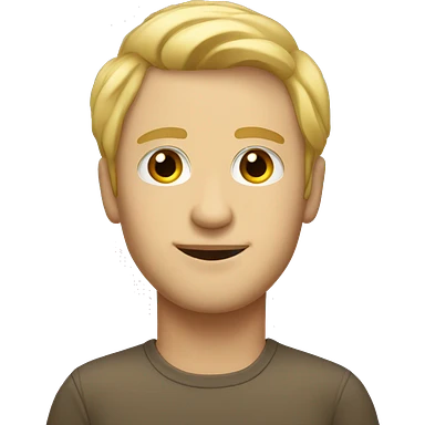 Blonde with relaxed short curtains guy, longer than average oval shaped face, brown eyes emoji