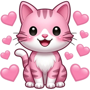 kawaii cat pink with hearts with blush as happy emoji
