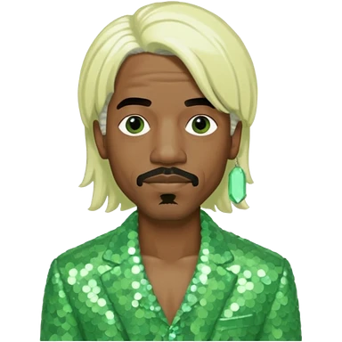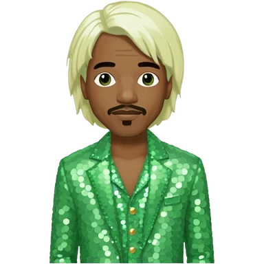 Andre 3000 from Outkast with long white blonde hair, pale green sequin outfit emoji