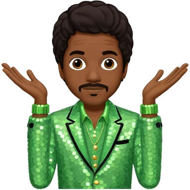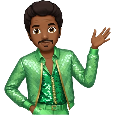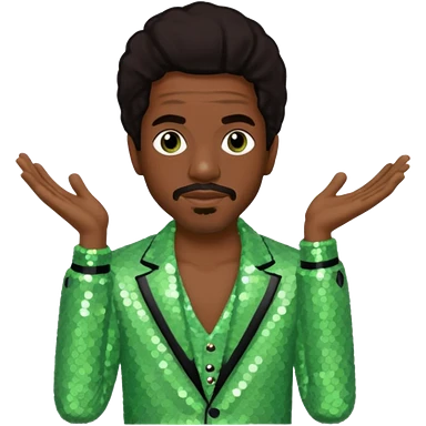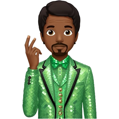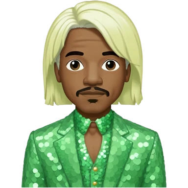 Andre 3000 from Outkast with dark brown hair, pale green sequin outfit emoji