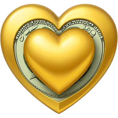 "Realistic HD heart fully merged with money, red glossy heart seamlessly fused with cash textures and gold tones, glowing dramatic light, symbolizing love and wealth becoming one, white background." emoji