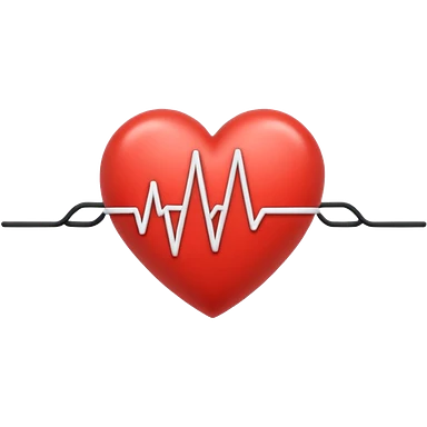 Minimal line-art icon of a heart with a pulse line inside, clean modern style, simple outlines, no background, transparent, represents “medical challenges / health difficulties emoji