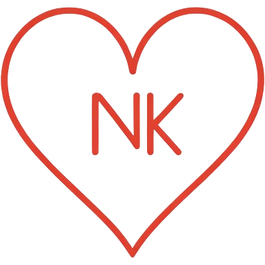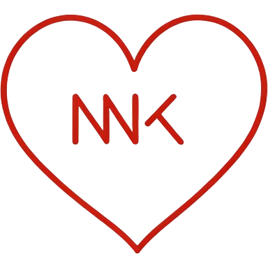 Minimalist illustration of a heart drawn with a single continuous line Integrated into the heart’s line, the letters ‘N’ and ‘K’ appear subtly, as part of the drawing itself emoji