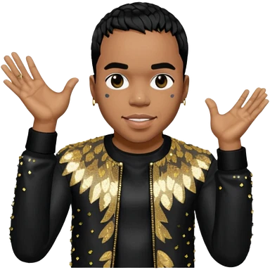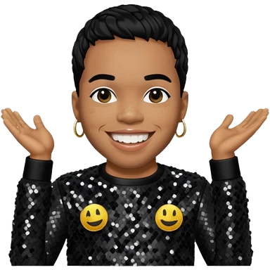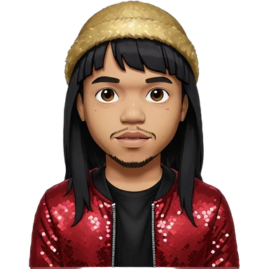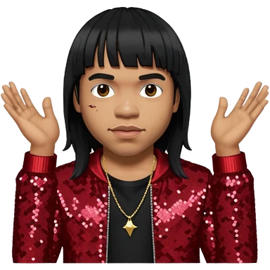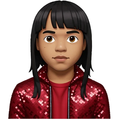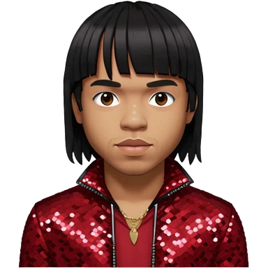 Anderson Paak with black hair, black sequin outfit emoji
