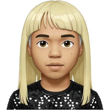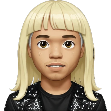 Anderson Paak with long platinum blonde hair with bang, black sequin outfit emoji