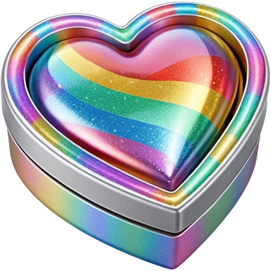 3D isolated, rendering, 8k resolution, 1x1, 8000x8000 pixels, transparent background, no emoji faces, Heart shaped box wrapped in silver metallic paper with 3D appearance holographic rainbow prismatic effect glitter cute cute emoji