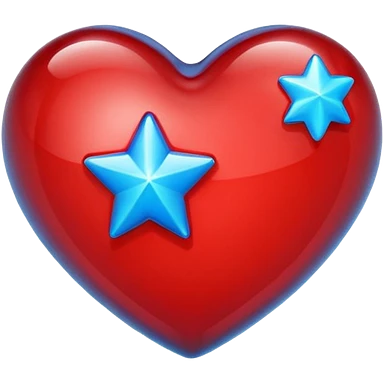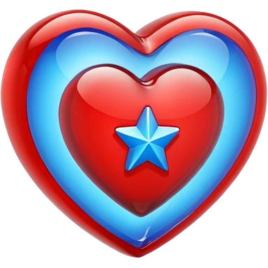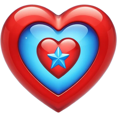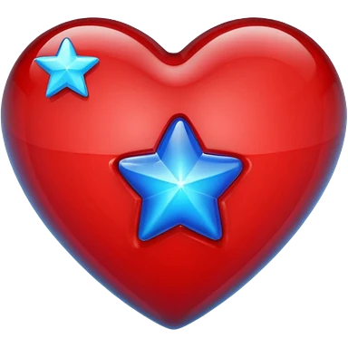 A glowing hologram of a red 3D heart with a bright blue star inside emoji