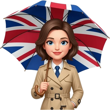 woman in Trenchcoat with umbrella in Union Jack emoji
