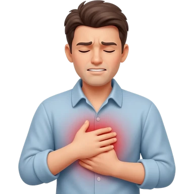 person with heartburn, uncomfortable expression, hand on chest, chest area highlighted emoji