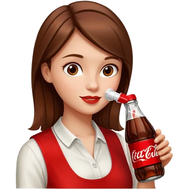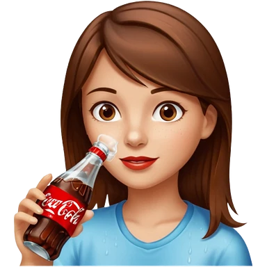a girl with brown hair drinking a bottle of coca cola emoji