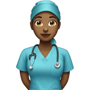 afro latina nurse smiling wearing scrubs and stethoscope emoji
