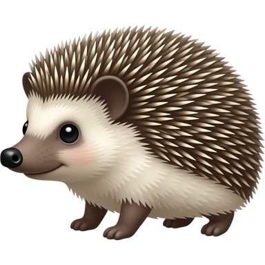 blue hedgehog emoji with long forward-facing quill spikes, smooth rounded face, large oval eyes with black pupils, small black nose, thin confident smile, 3D Apple emoji style, 1:1, clean shading, cute but energetic expression emoji