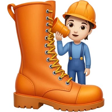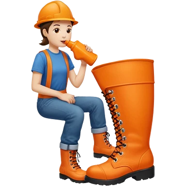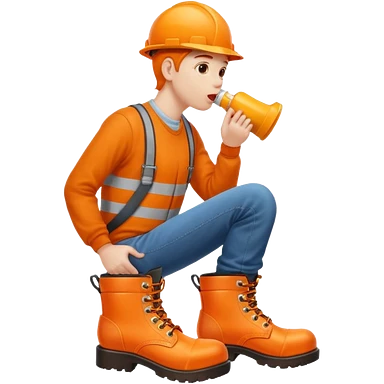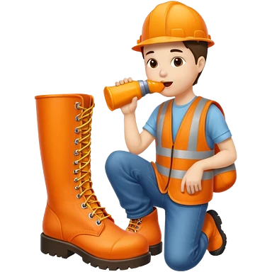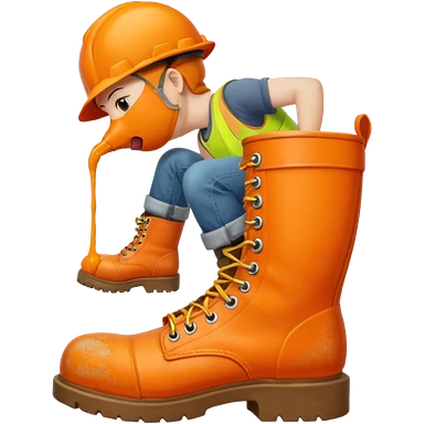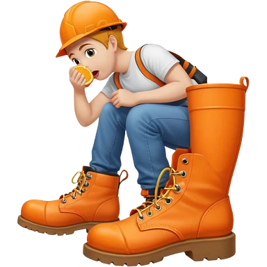 Person licking a large orange work boot emoji